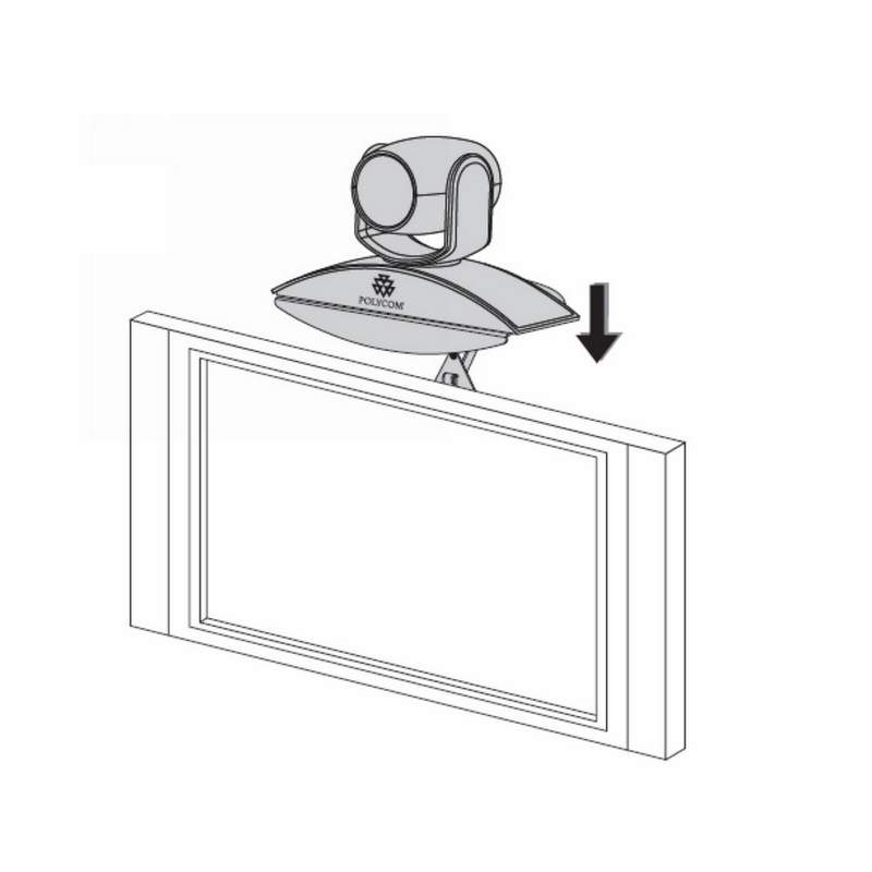 Polycom HDX camera mounted on the top of the TV kit Eagle Eye tray series Polycom