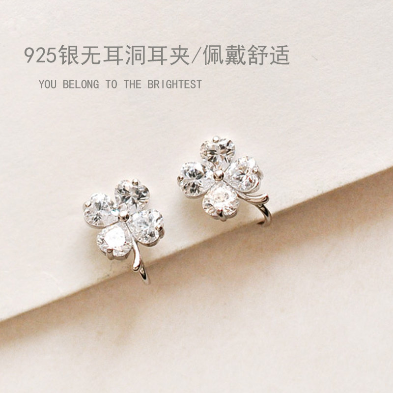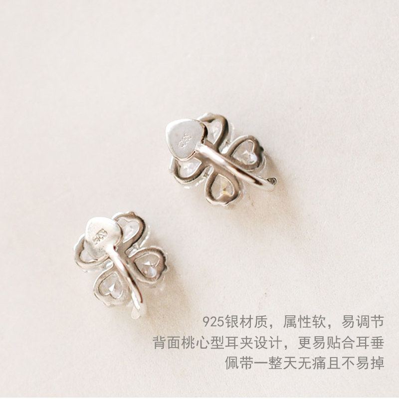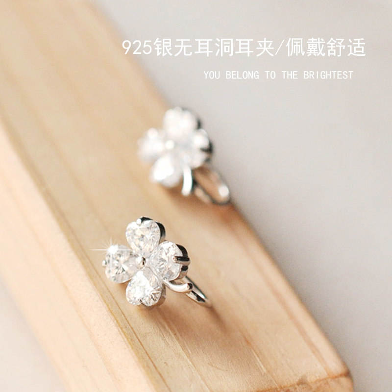 925 silver Brief about four leafs without ear clip Ear Clip Female Ear Pin ADVANCED SENSATIONAL STYLE SMALL CROWD OF DELICATE MOSQUITO REPELLENT COIL