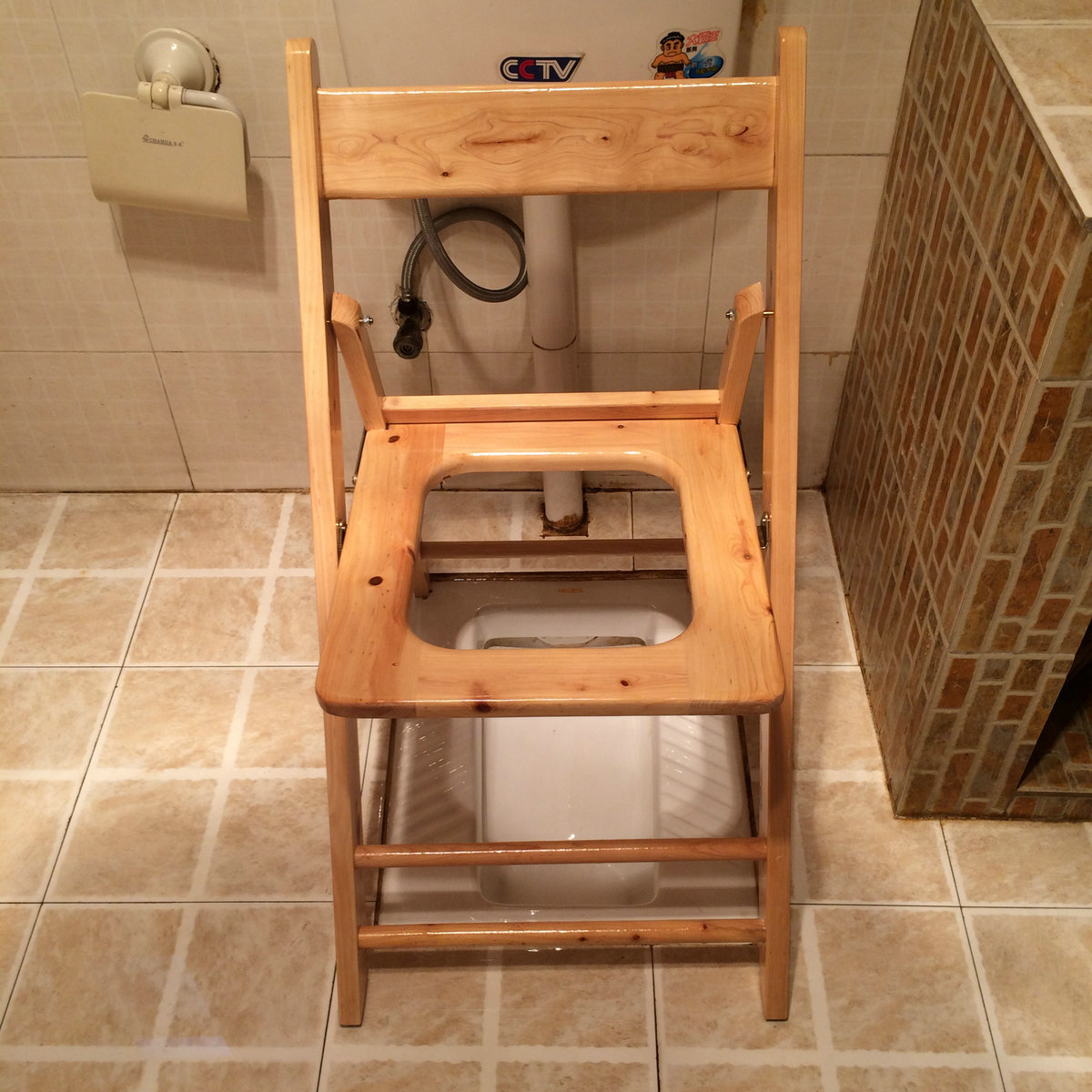Spot direct shot full cypress solid wood folding mobile toilet stool Pregnant woman old man toilet chair