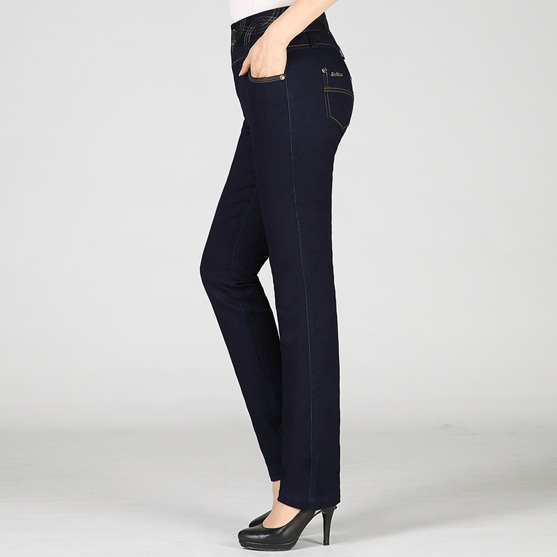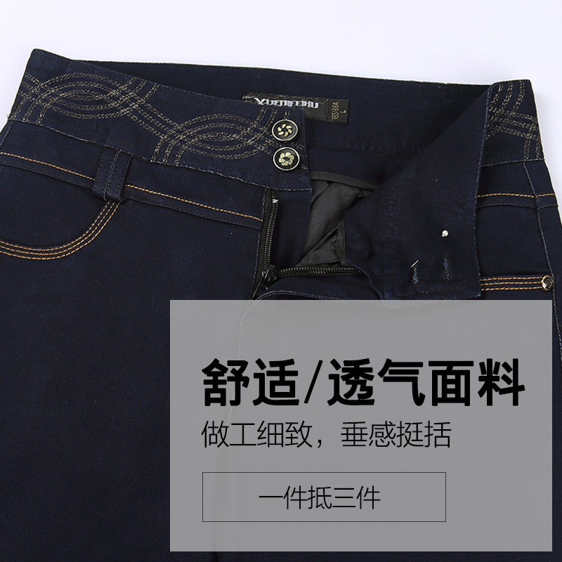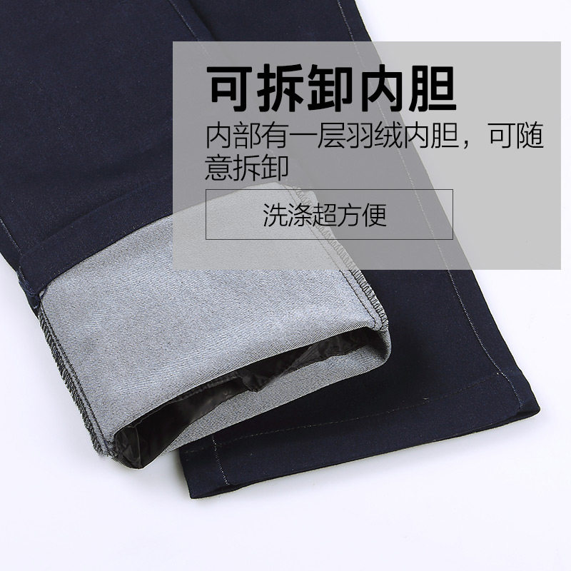 Denim Detachable Liner Lady External Wearing Down Pants Thickened High Waist Elastic Straight Cylinder Manmade Mid Aged Duck Suede Pants