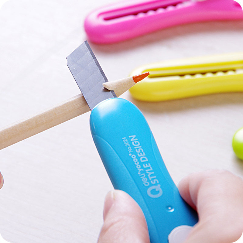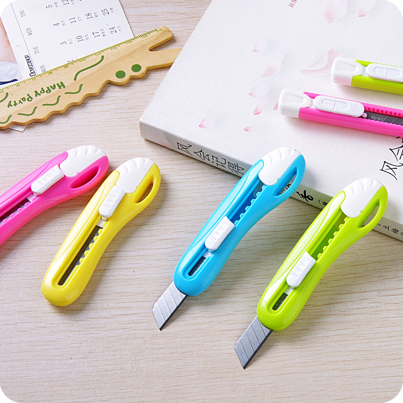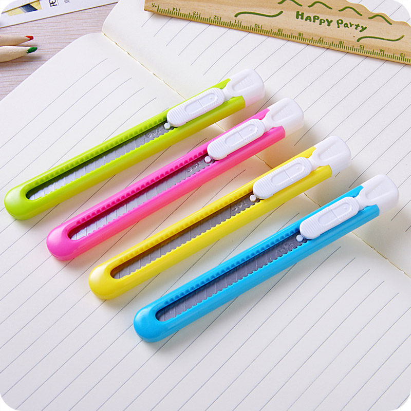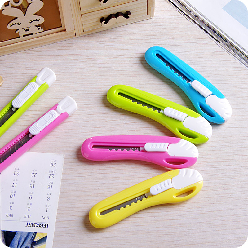 Deli candy color art knife with lanyard hole letter opener knife tool knife Office cutting cutting knife Wallpaper knife