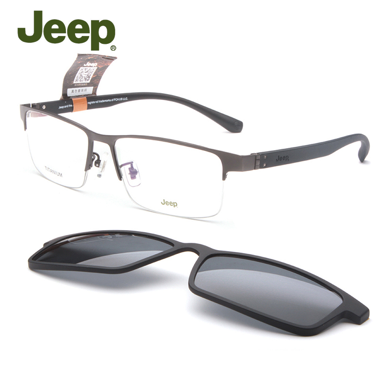 Jeep Jeep face nearsight glasses frame male half frame magnetic suction glasses frame titanium frame can be equipped with degree T7024