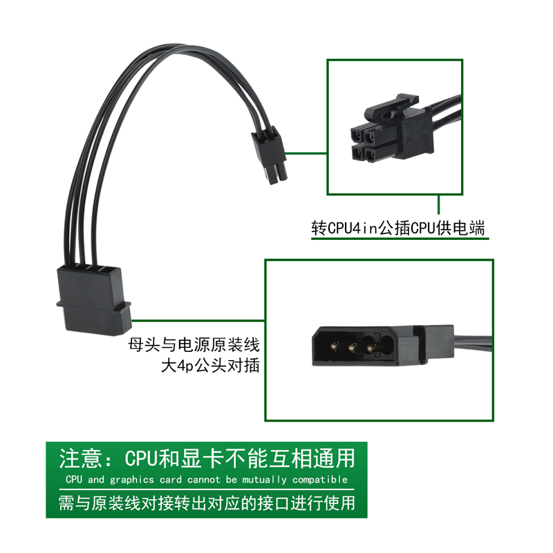 Computer CPU auxiliary power supply large D port to 4pin dual motherboard power supply wiring single large 4p to 4p
