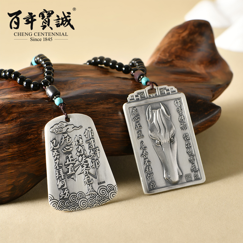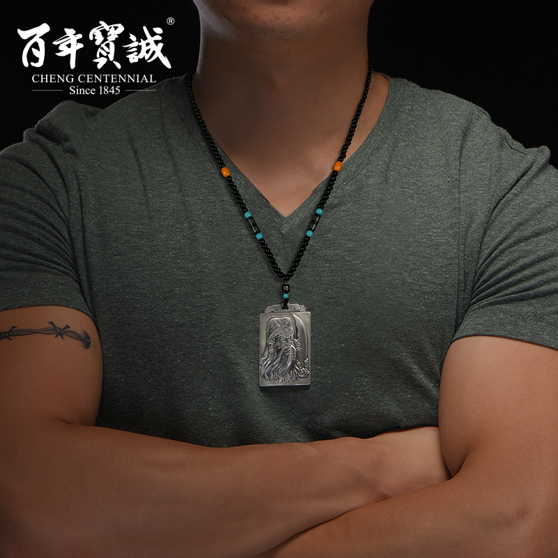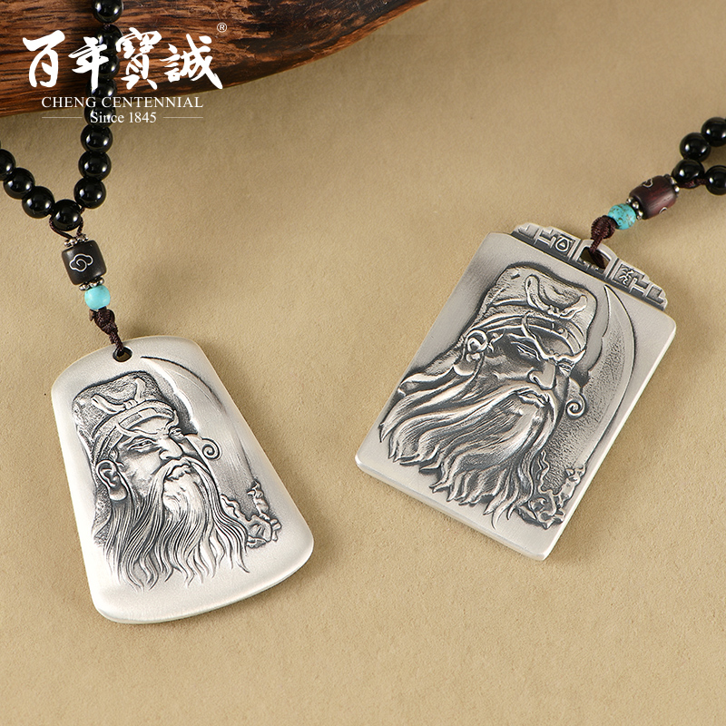Centuries-old Baocheng Original Wucai Shenguan Gong pure silver pendant small crowdsourced design Feeling National Wind Guan Plume Silver Necklace