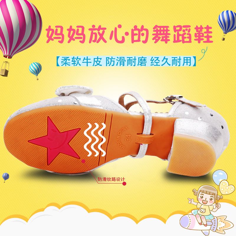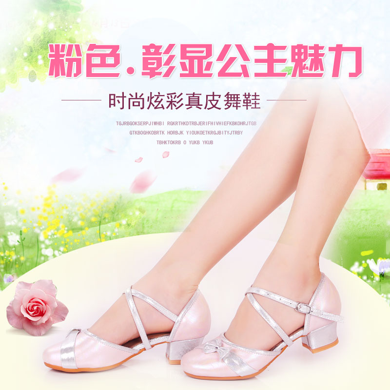 Latin dance shoes for children's girls High-heeled leather dance shoes for toddlers soft-soled girls summer dance shoes practice shoes