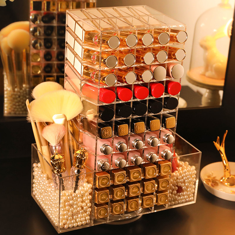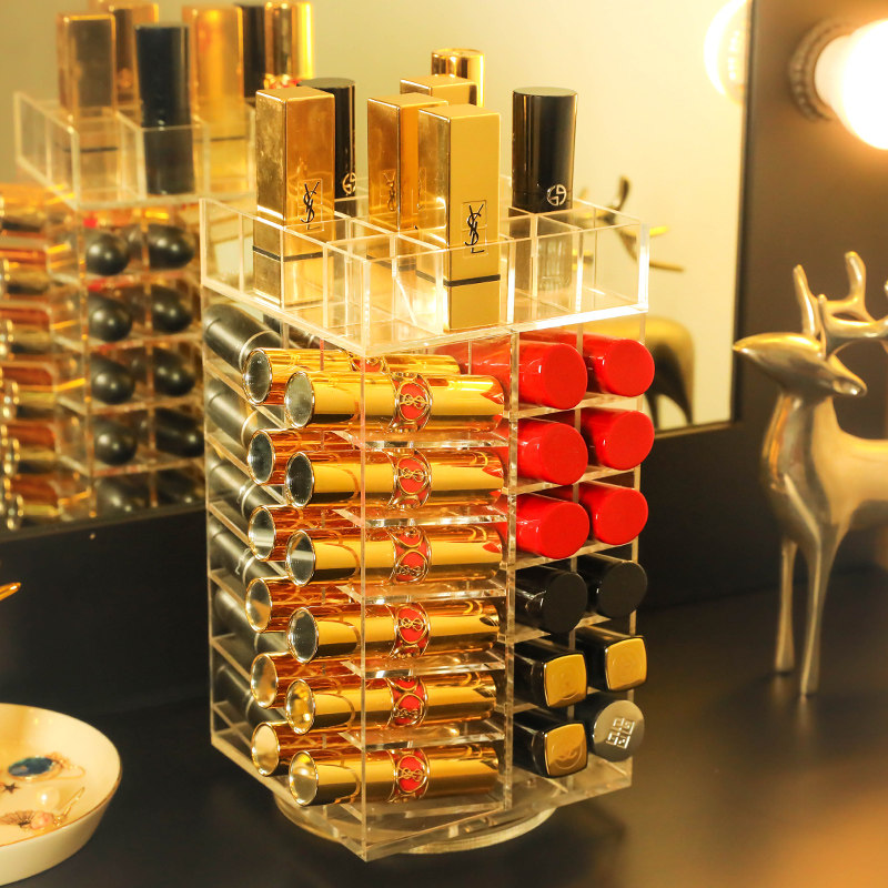Girl Butler Tubes Transparent Acrylic 360 Degrees Swivel Lip Balm Lipstick Red Containing Box Rack Color Makeup Tabletop Containing box