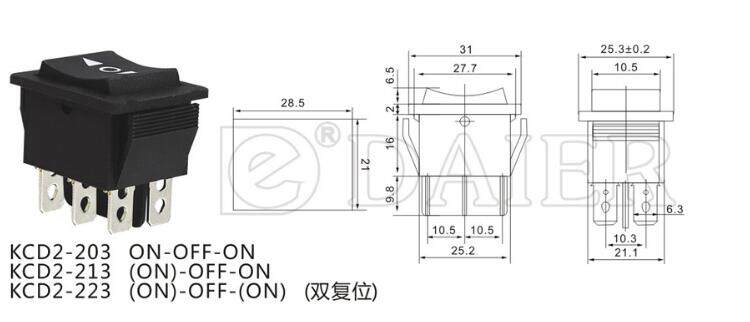 Bilateral self-reset boat type button switch automatic bounce back in the middle 6 foot 3 gear positive reversal 16A power button