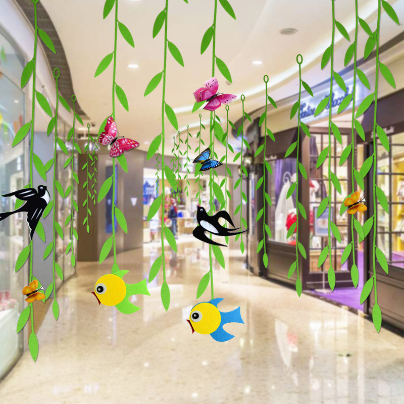 Kindergarten corridor classroom Spring decoration charm pendant Shopping mall shop air charm Leaf wicker 10 pieces