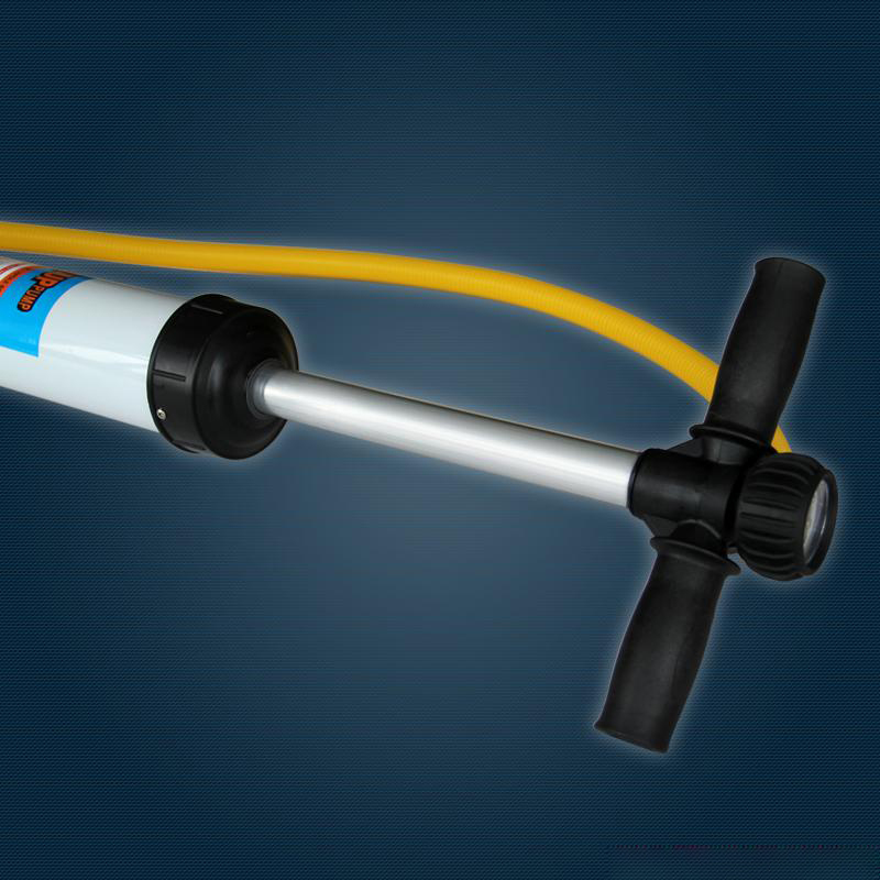 A high pressure inflator in black with a high pressure