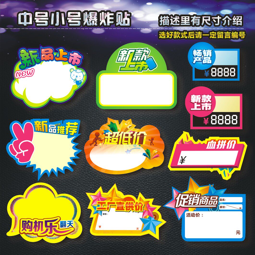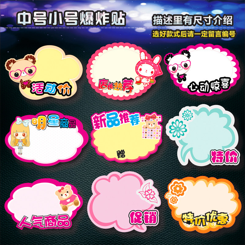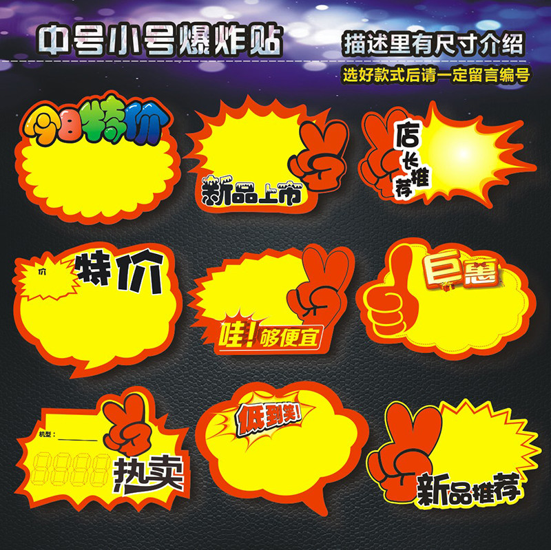 Explosion sticker POP advertising paper medium and small price tag 10 special promotional goods label price tag price tag