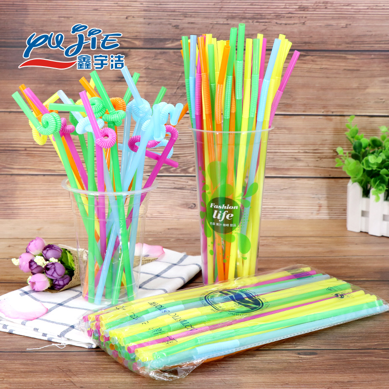 Disposable tableware artistic creativity lengthened universal elbow telescopic juice household straw color 60