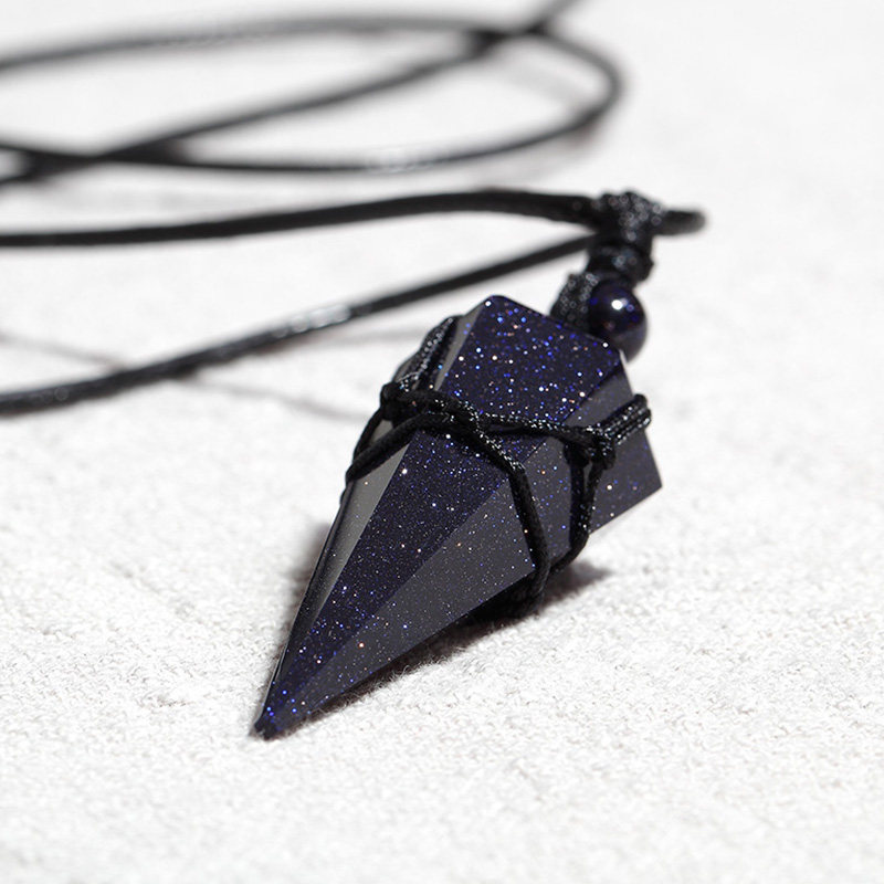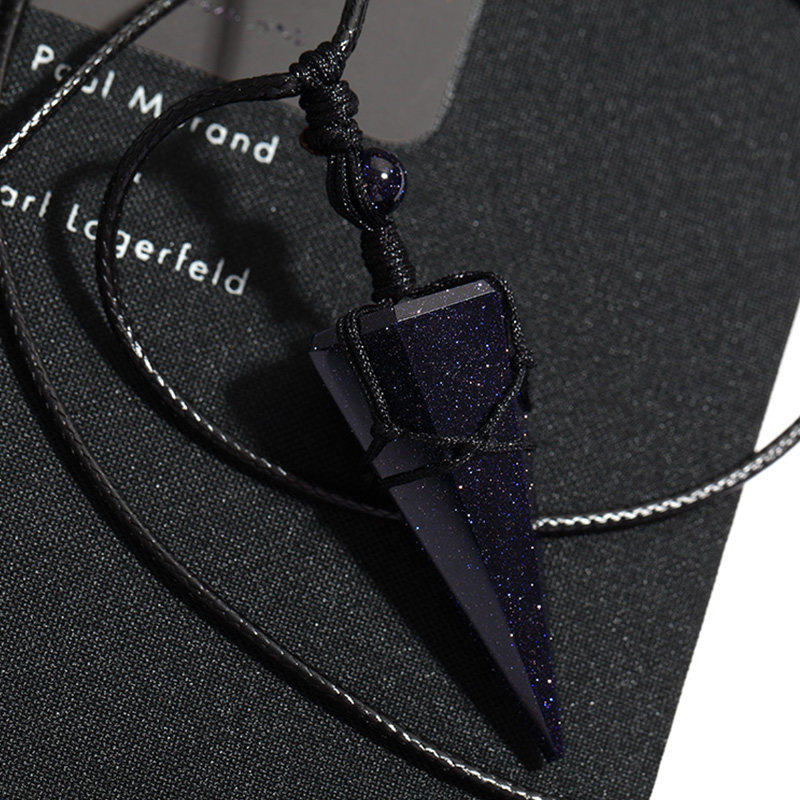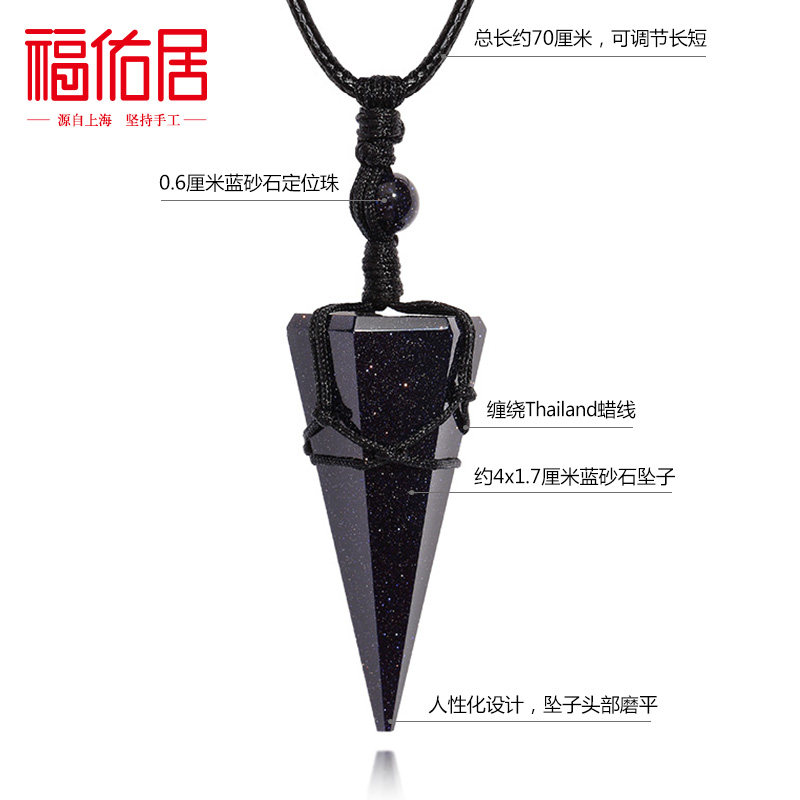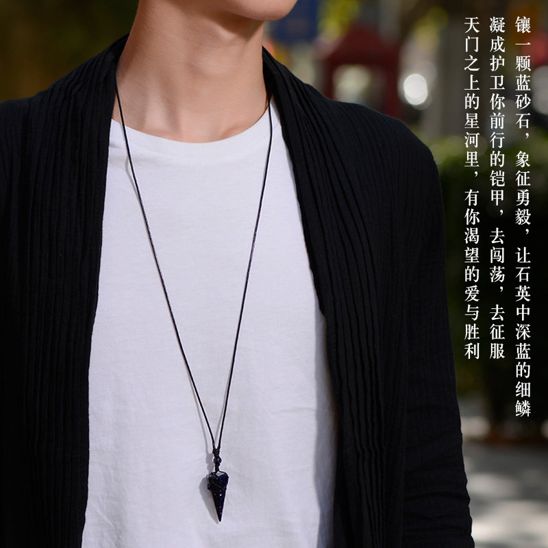 Foyou Residence Crystal Blue Sandstone Pendant Necklace for men and women with fur coat chain Long version Constellation Lingo