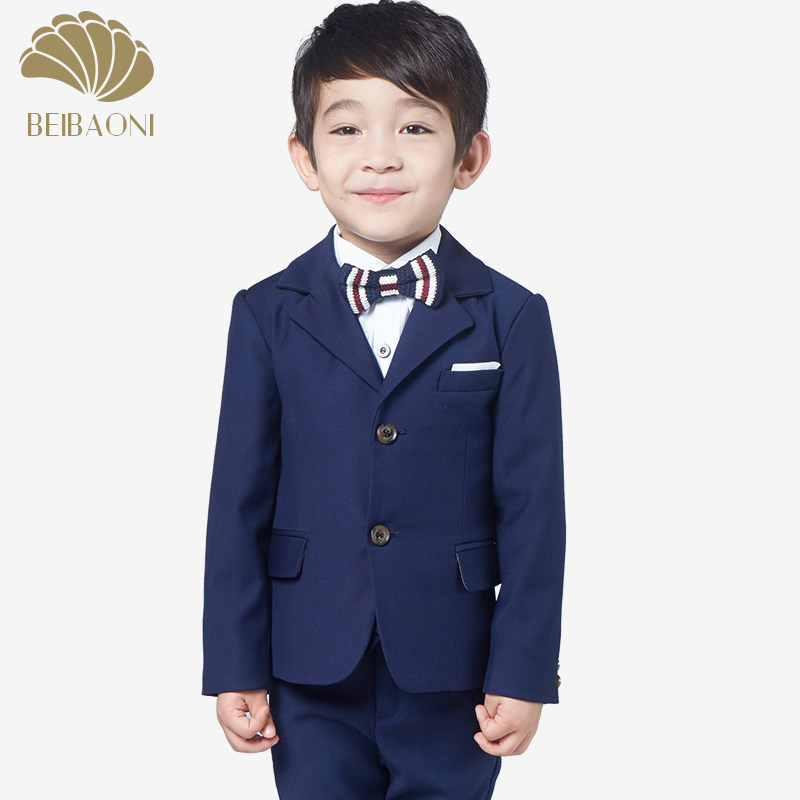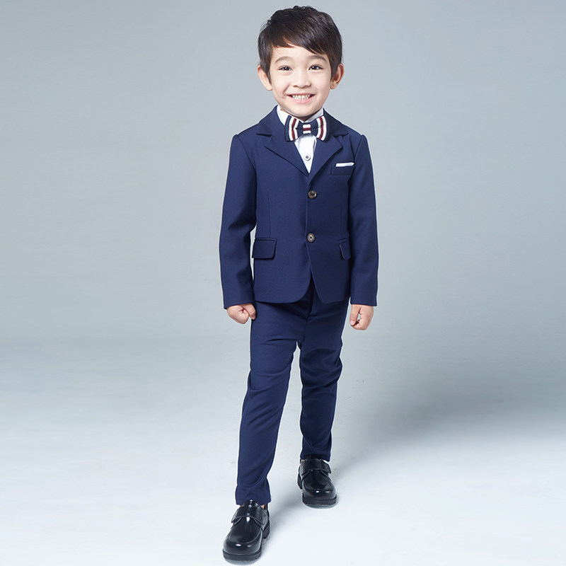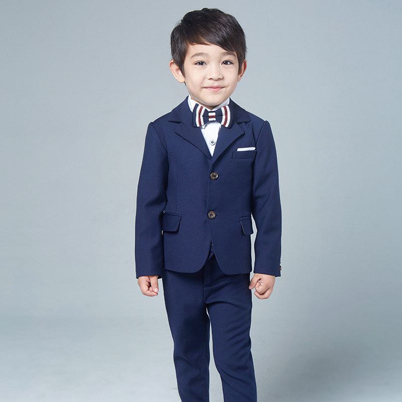 Navy blue 4-piece set(suit pants white shirt knitted bow tie) Black 4-piece set(suit pants white shirt black bow tie) Navy blue 5-piece set(suit pants white shirt needle
