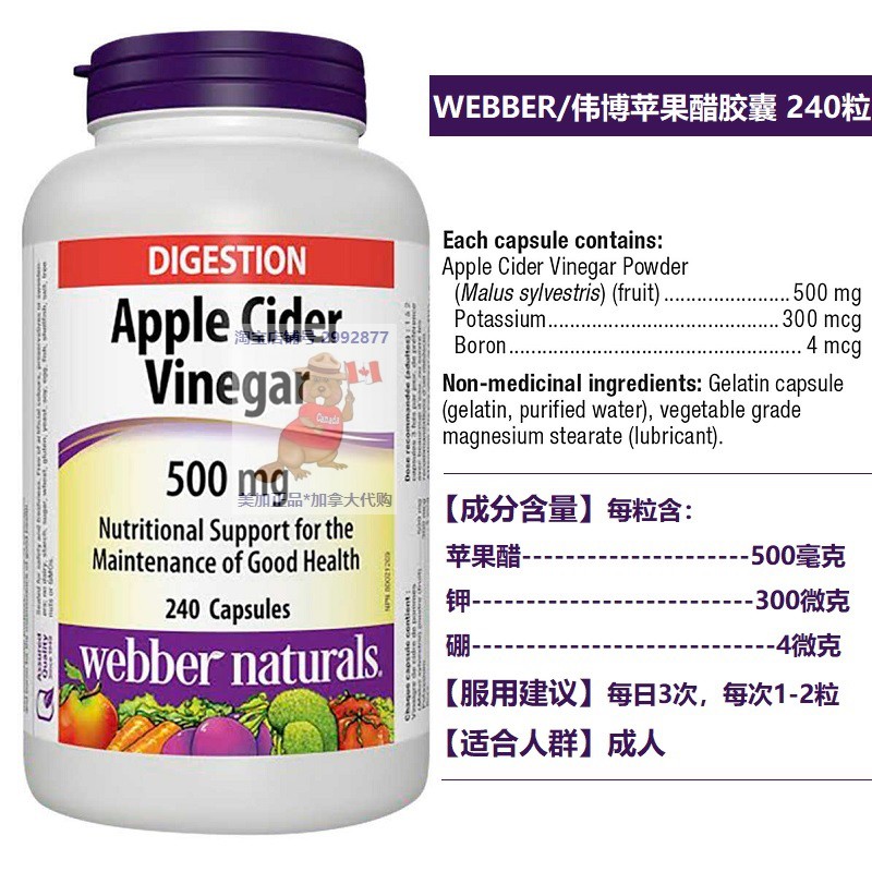 Webber Apple Cider Canada Imports Weber Weibo Potassium Boron Apple Cider Vinegar Capsule 240 Grain