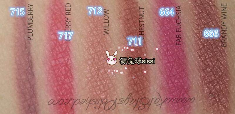 664c Fab Fuchsia717 berry red715 Plumberry712 Willow711 Ches