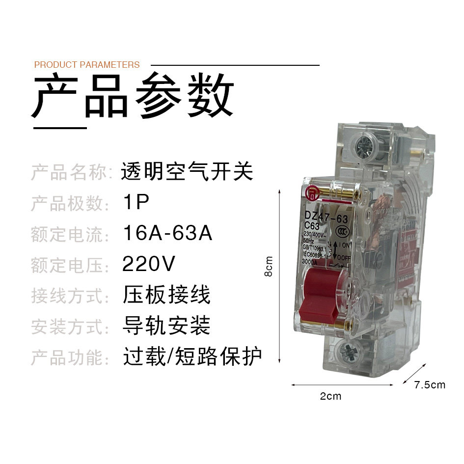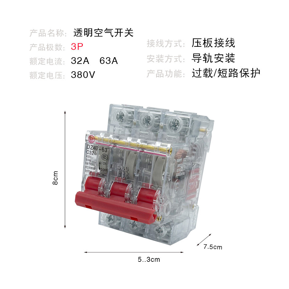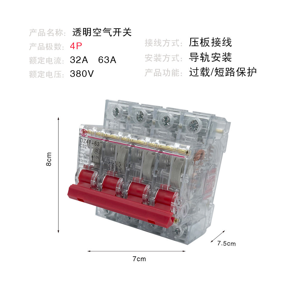 Shanghai People DZ47-63 Transparent Small Breaker Air Switch Home Protector 1P2P3P4P
