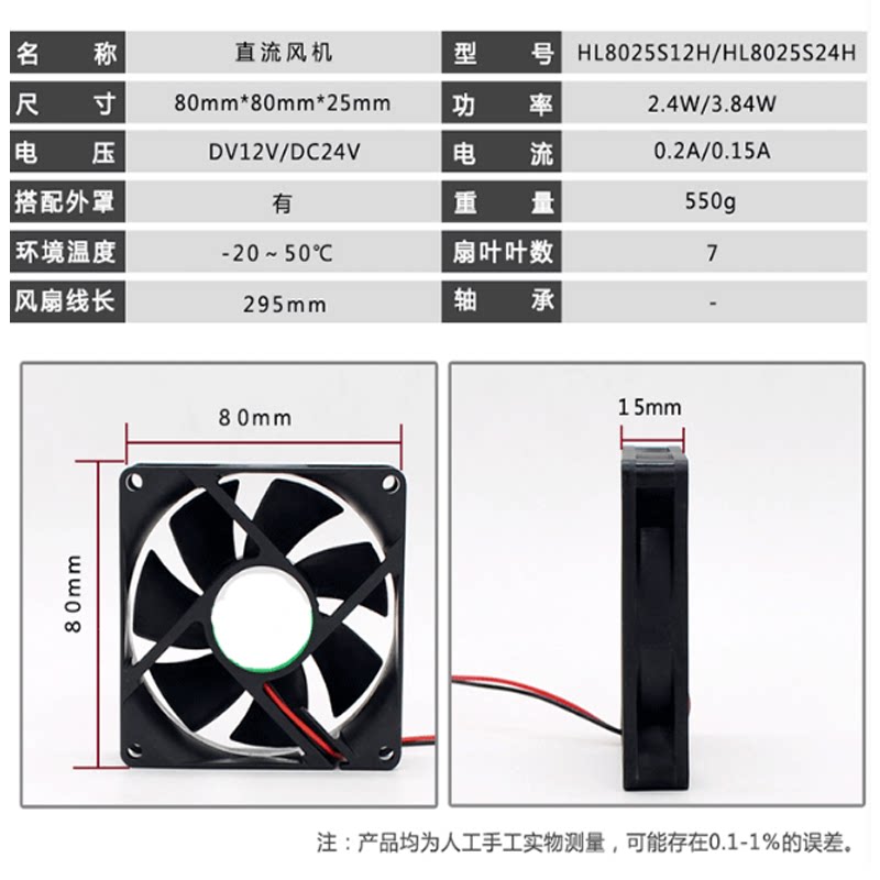 Heat dissipation fan 8025 DC12V DC24V mute 8cm oily bearing DC ventilator copper core suction smoke