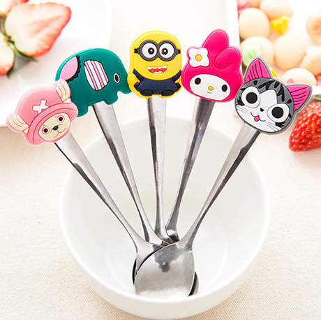 Stainless steel spoon to eat creative silicone Silicone Cute Home Coffee Stirring Spoon Tablespoon Spoon Soup Spoon Small Spoon