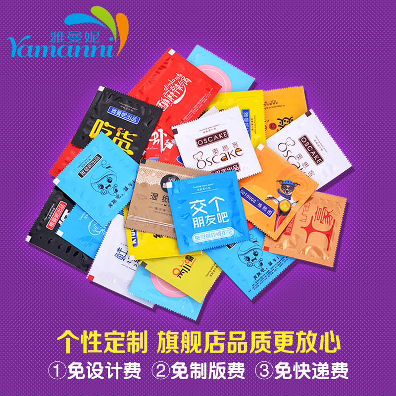 Yamani takeaway Internet cafe dining creative advertising wet wipes custom disposable adult funny condom wipes paper