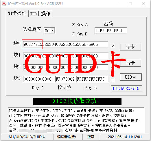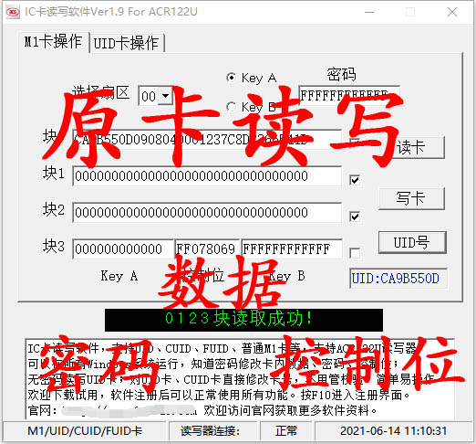 Ronger Acr122u reads and writes software M1 IC data modification ic card software write card software CUID FUID