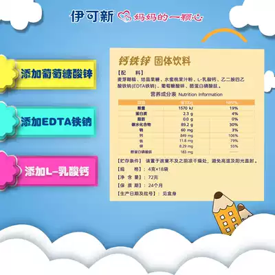 Dyne Yikoxin calcium, iron and zinc children's baby iron, calcium and zinc solid beverage granules 4g*18 bags Domestic