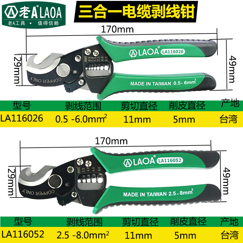 Old A Taiwan native 3 Hop 1 Cable Scissor Cable Cut Wire Pliers 3 Fit 1 Electrician Knife Multifunction Wire Stripping Pliers