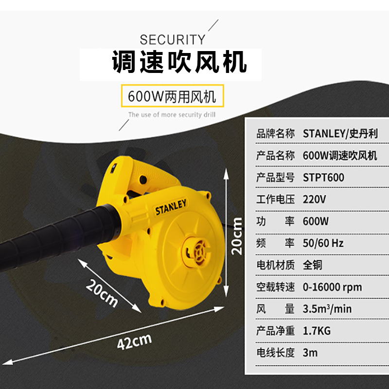Stanley Blow Suction Ventilator STPT600 High Power Robust Power Home Computer Dust Dual-use Blower
