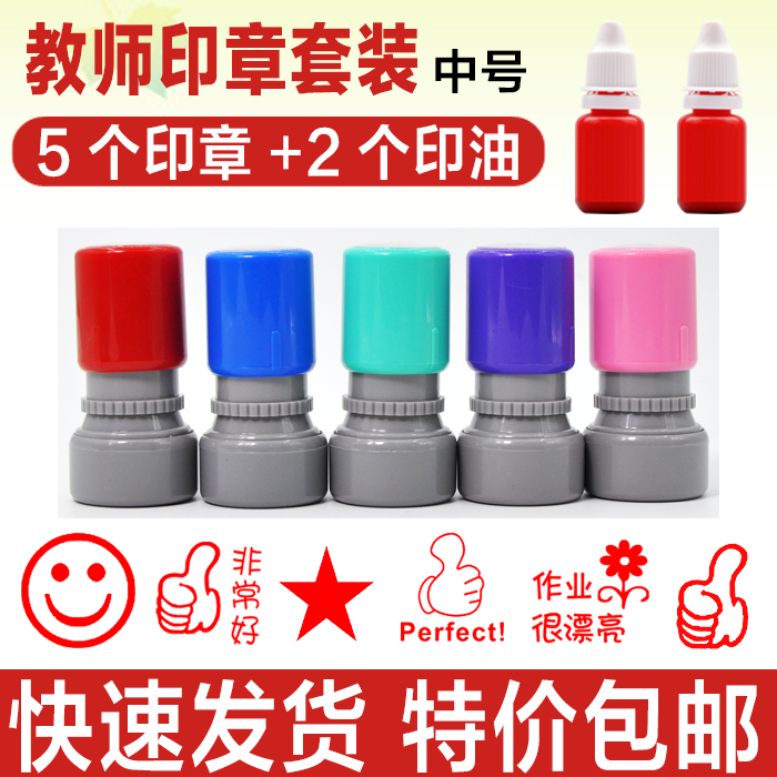 Teachers Chapter photosensitive teaching seal encourages children to reward seal prize Teacher's comment suit teacher batch of homework elementary school students Chapter of elementary school students Read the pentagram smiley face