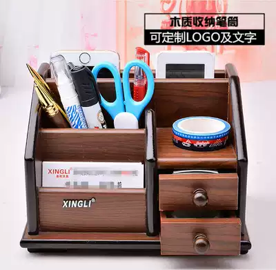Wooden pen holder with drawer office storage box business card holder home wooden pen holder cute desktop storage box student stationery box storage pen holder multifunctional wooden large capacity drawer type