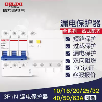 Delixi miniature circuit breaker DZ47 leakage protection 3P N63A household total open air switch with leakage protector