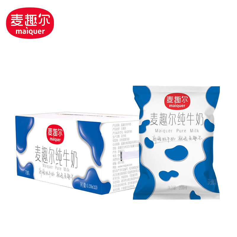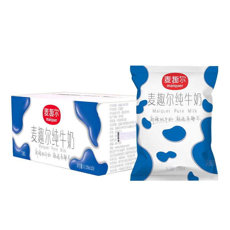 Xinjiang Maiquer Pure Milk 200ml * 20 Bags Full Case Whole Milk Breakfast Milk Nutritional Beverage Pure Milk