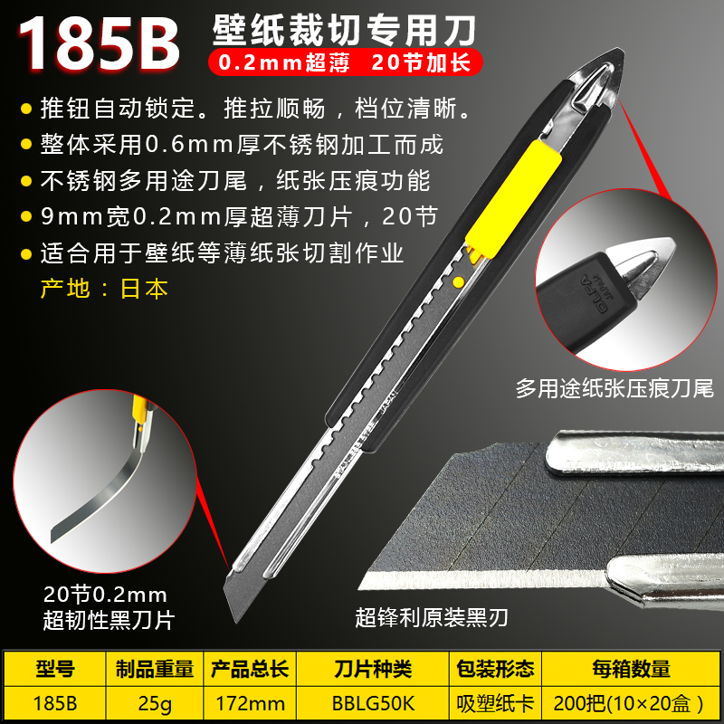 Japan olfa beauty artificial knife small number 185b stainless steel wallpaper knife wallpaper knife ultra-thin black blade paper knife imported