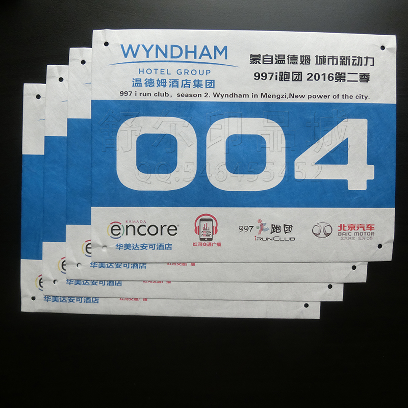 DuPont fiber paper marathon track and field runners running waterproof color number cloth plate paste custom logo