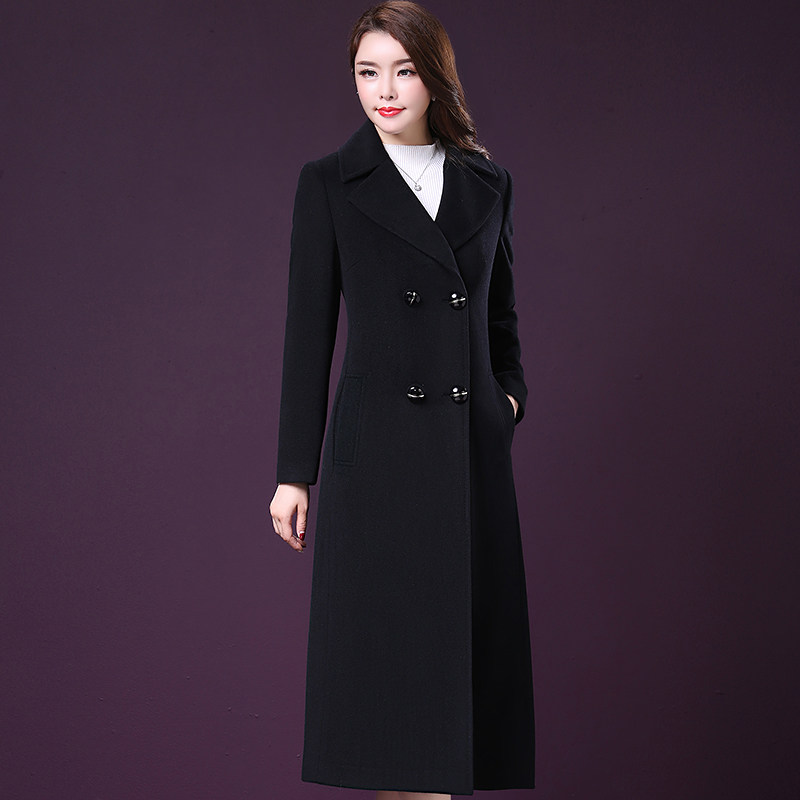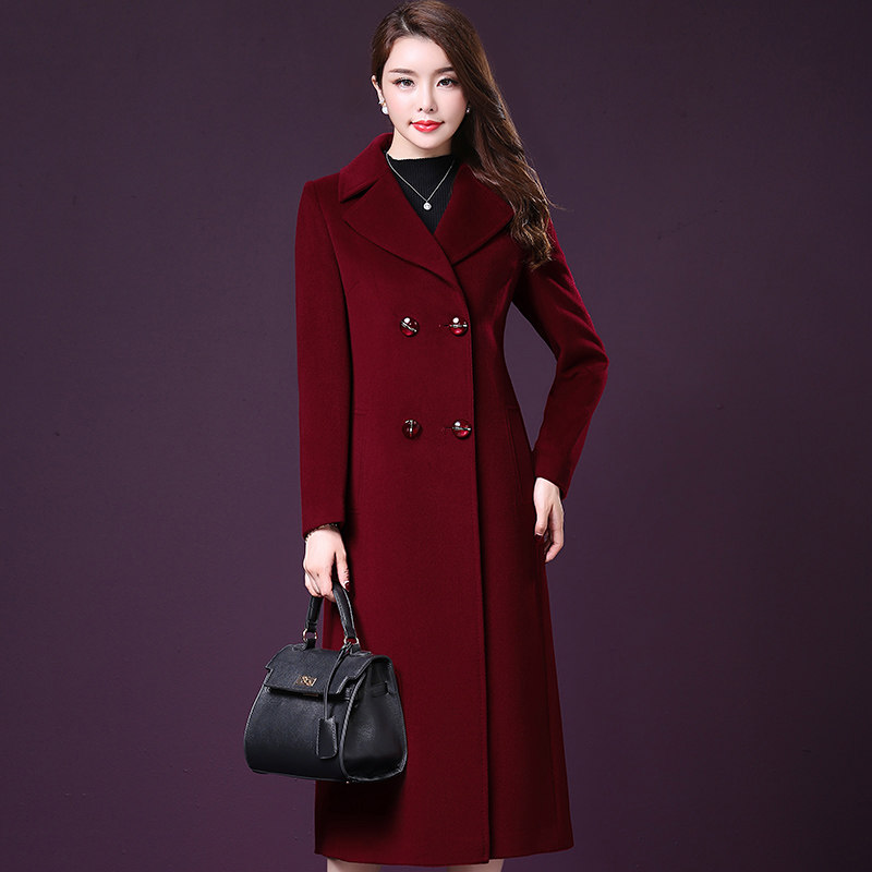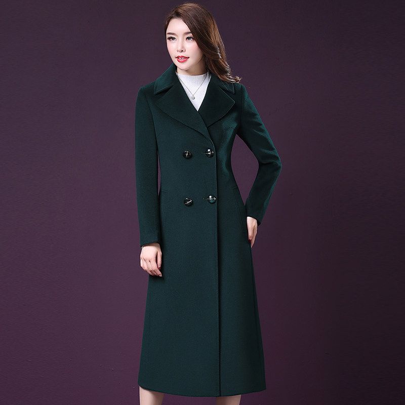 Off-season clearance woolen coat women's long autumn and winter double-breasted slim fit over-the-knee cashmere woolen coat