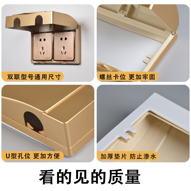Champagne Gold Double 86 Switch Socket Anti-Splash Box Bed Bag Cover Makeup Room Kitchen Gold 2 parallel waterproof case