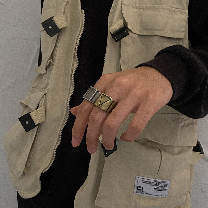 CARMEN EUROPEAN AND EUROPEAN STREET WAVE Hip Hop ring Men single index finger tail ring Triangle geometric wide version of the ring