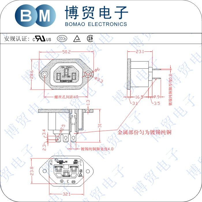 Taiwan RONGFENG power socket SS-8B with ear female seat chassis power female seat IEC power socket