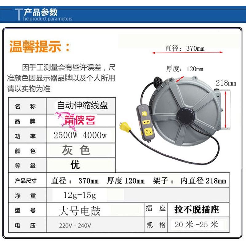 Automatic telescopic wire disc recoverewinder spool electronic drum 25 m recycled power disc line drum drain plug socket