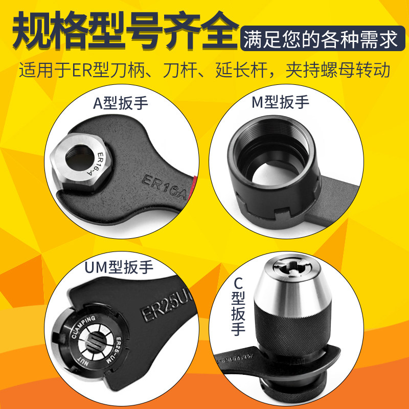 ER wrench ER8ER11 16 20 25C32UM shank nut drill chuck Crescent hook APU wrench