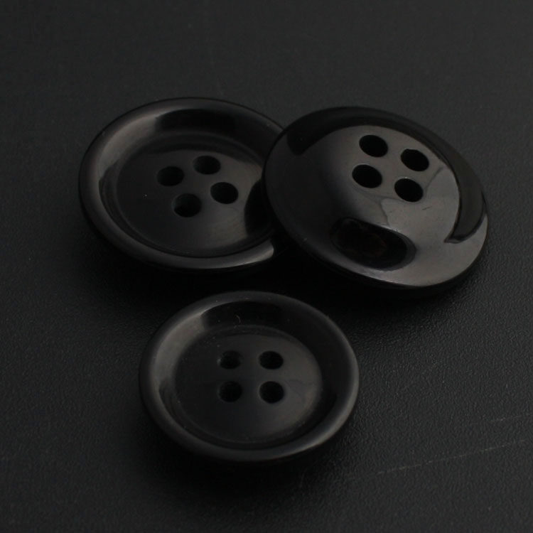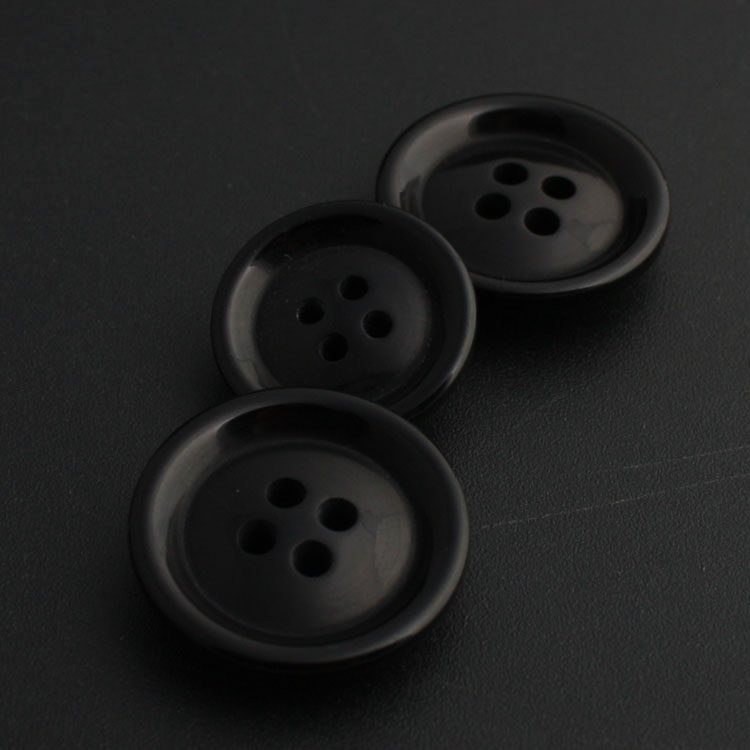 Pure black coat trench coat wild black unisex casual item resin four-eye button button