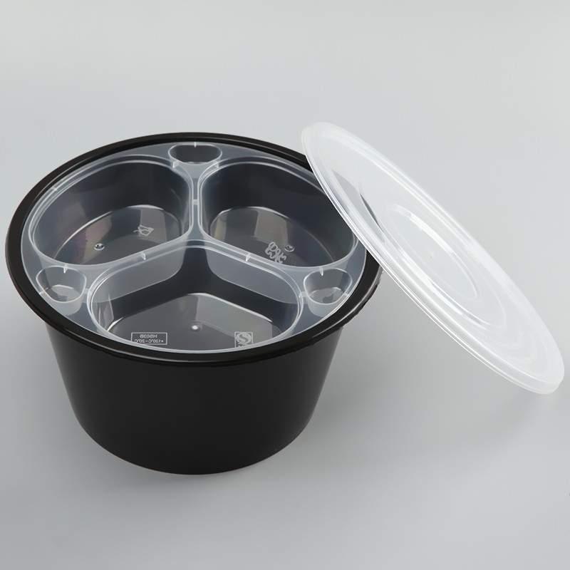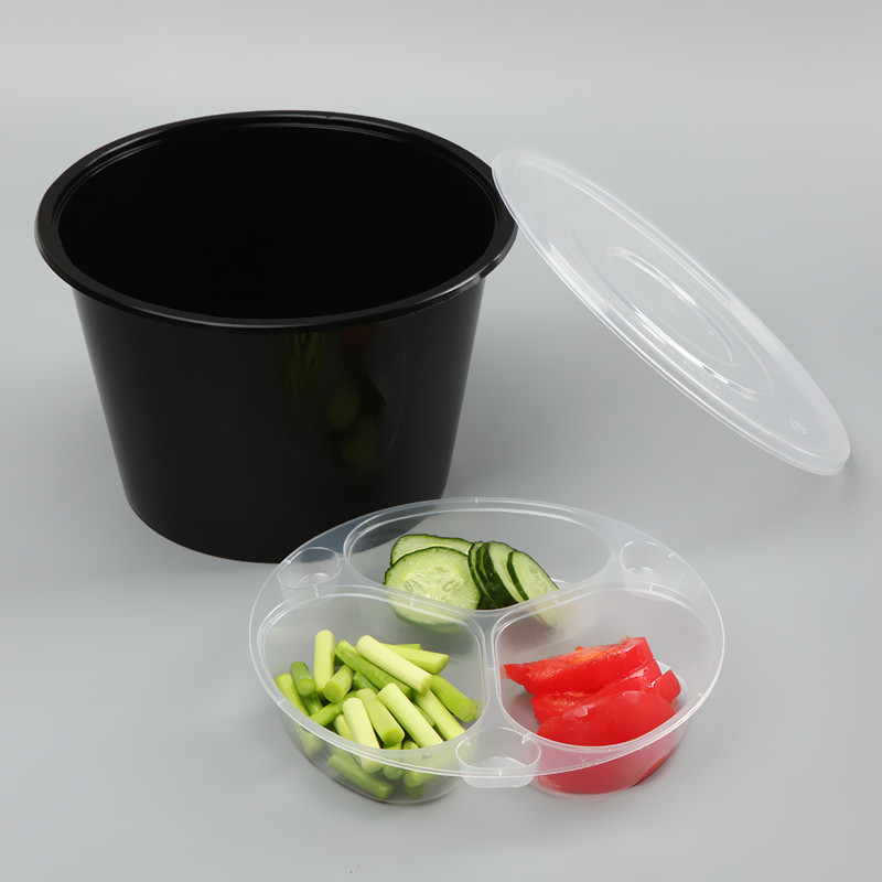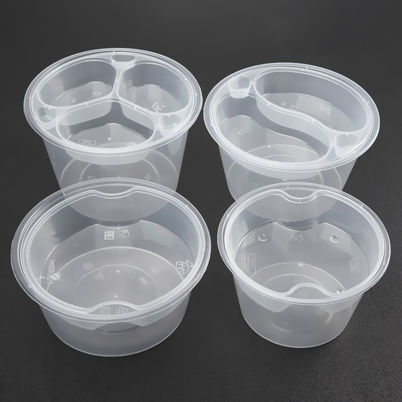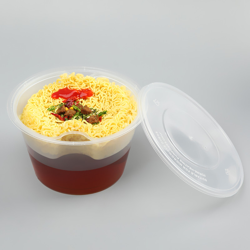 Thickened disposable double-layer packaging box round takeaway lunch box two-layer soup noodle separation soup noodle bowl double grid layering