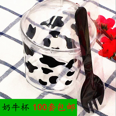 Coffee Type with cover Independent spoon 1 coffee token with cover Independent black fork spoon 1 cow cup cover Independent black fork spoon 1 transparent cup cover Independent spoon 1