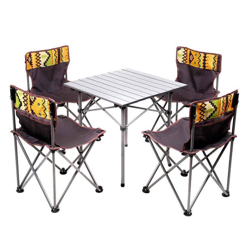 Male wolf outdoor indoor folding table and chair set Portable picnic table and chair combination Five-piece self-driving tour table