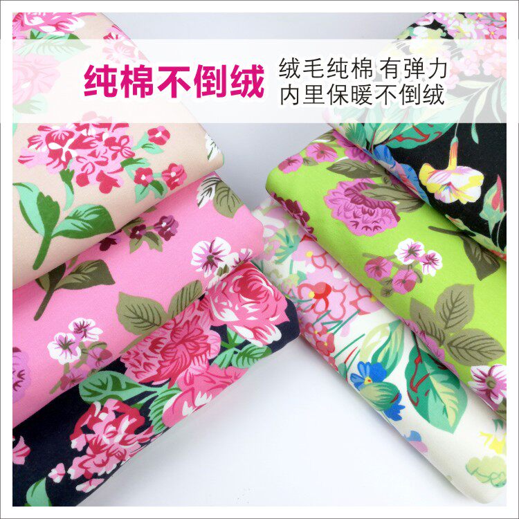 Pure cotton thickened without inverted velvety cloth for autumn and winter elastic with velvety coat of clothing jacket inner lap pants clothing fabric