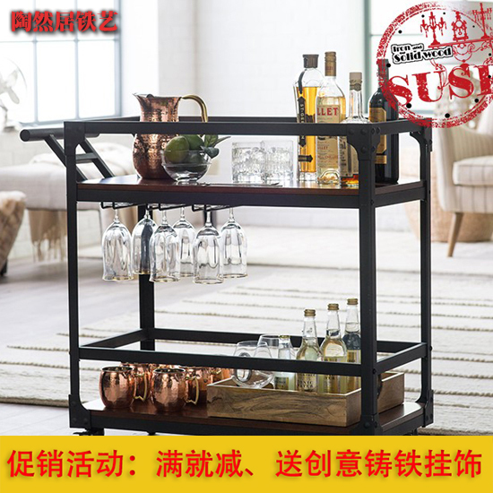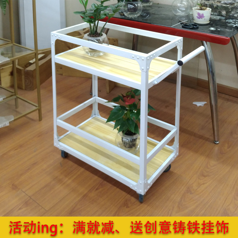Wrought iron solid wood beauty salon trolley Dining car Hair nail tool car Hotel wine car Multi-function