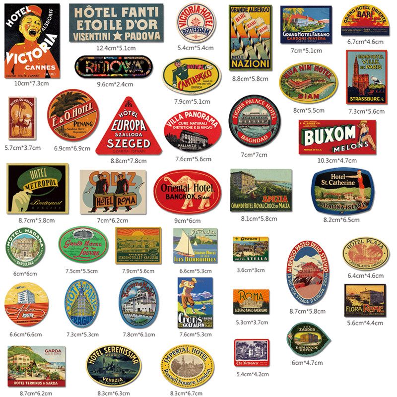 39 Retro Hotel Suitcases Suitcase Computer Ipad Stickers Painting Fishing Rod Waterproof Fish Tank Skateboard Skateboard