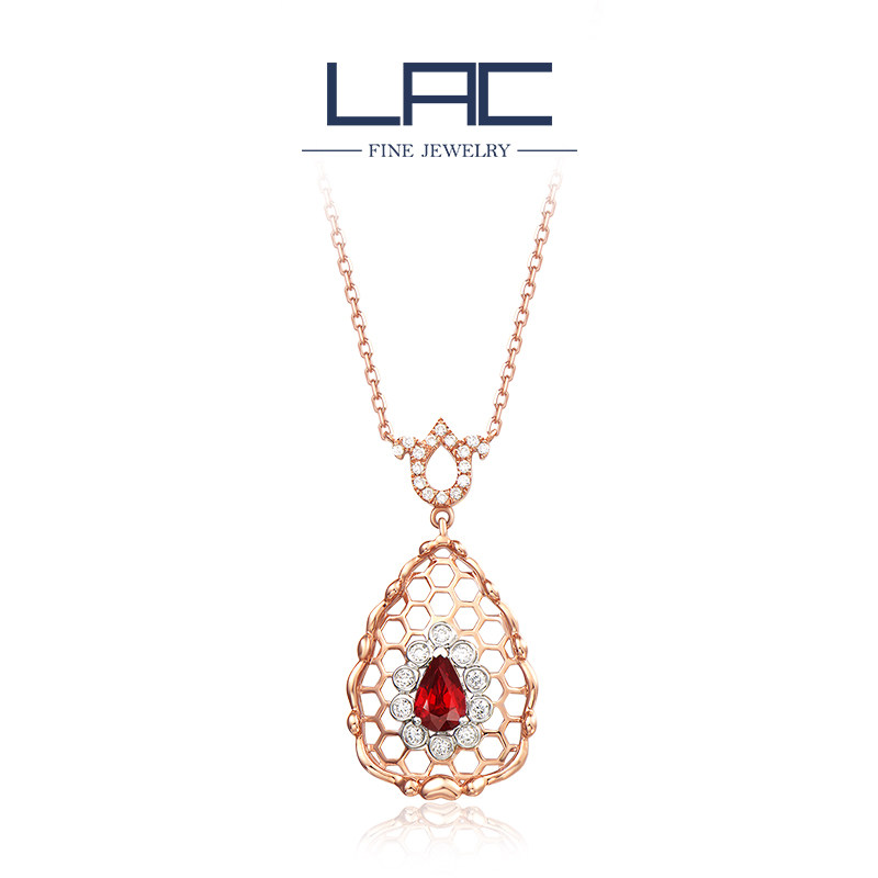 (Magazine Stars Same) LAC Jewelry Natural Ruby Necklace Drop Shaped 18k Gold