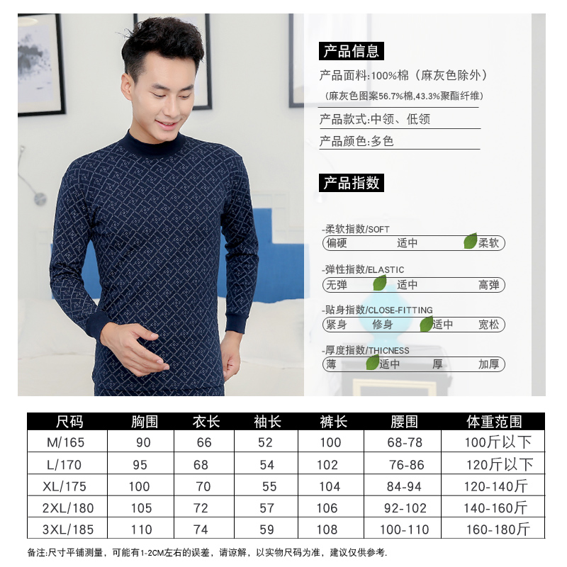 Autumn clothes sanitary pants for elderly pure cotton thin autumn and winter fever clothes for men all cotton low in cotton sweater suit