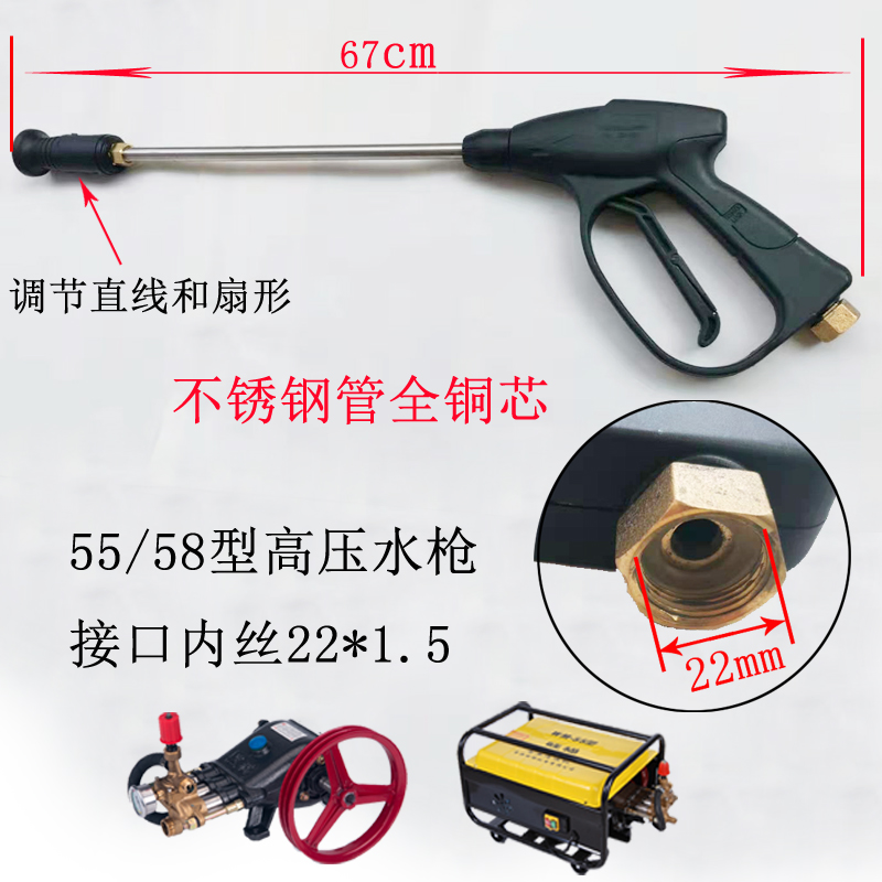 Please check the size of the gun interface carefully before placing an order No. 1 fan-shaped gun 55 58 interface No. 2 fan-shaped gun 55 58 interface No. 2 gun Water columnar 55 58 interface 55 58 Aluminum gun No. 1 fan