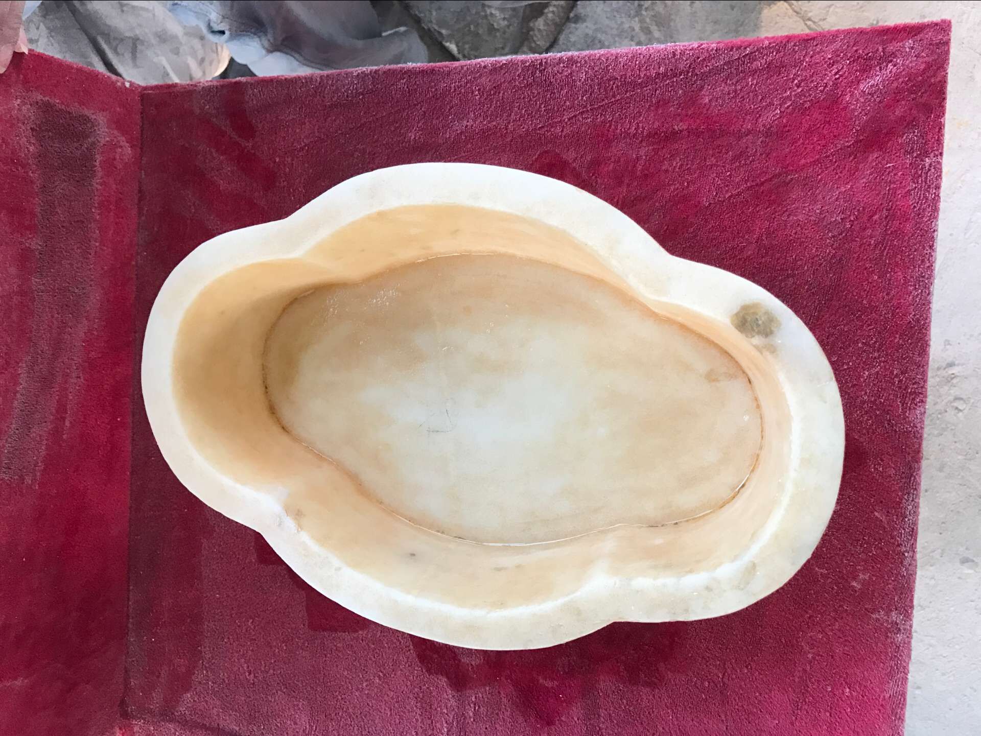 Boutique Green Stone Imitation Ancient Small Stone Basin Han White Jade Stone Carved Bonsai Basin Han Style Engraving Art Pendulum Flower Pot water fairy basin